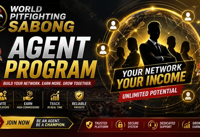 Take the next step and join the Agent Program at WORLD PITFIGHTING SABONG. Build your network, increase your earnings, and be part of an expanding platform.