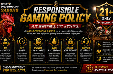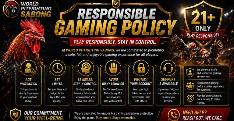 Through its Responsible Gaming Policy, WORLD PITFIGHTING SABONG aims to create a safe, respectful, and enjoyable space for all users.