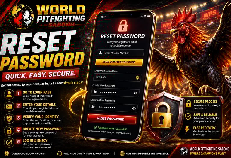 Resetting your password on WORLD PITFIGHTING SABONG is simple and efficient, ensuring you can quickly get back to enjoying the platform.